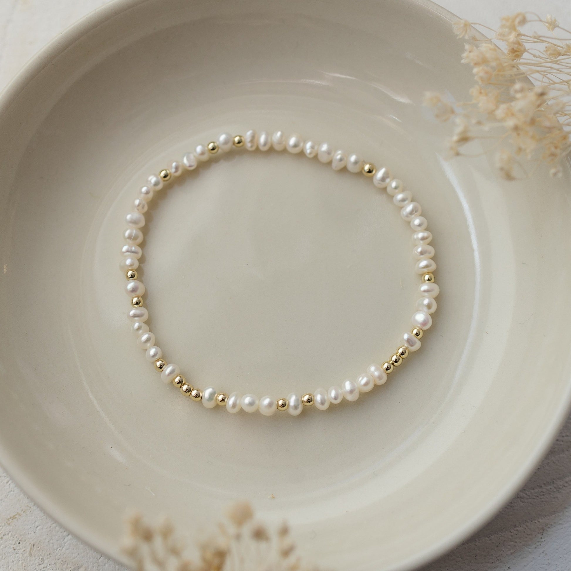 Details: elastic to fit most - made with fresh water pearls - gold plated - hypoallergenic, nickel and lead free - anti-tarnish coated