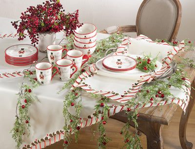 The spirit of Christmas will instantly set on your table with this cheerful and adorable Candy Cane Table Runner. Featuring a whimsical design detailed with a colorful candy cane styled border, this runner is the perfect foundation for your holiday decor. Pair with Christmas-inspired dinnerware or coordinating solid colors for a cohesive table and help make memorable moments for your guests.