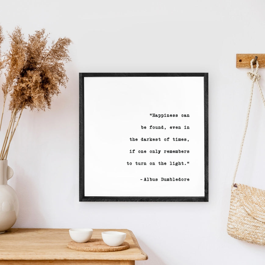 Sign measures approximately 13x13". The frame is wood stain on pine wood. Some of our frames have knots. A keyhole slot has been installed for hanging. Sign backing is MDF. Text is black and waterproof. The sign's white background will resemble a painted wall. Frame is stained pine wood. Frames may include wood knots. A keyhole slot has been installed for hanging.