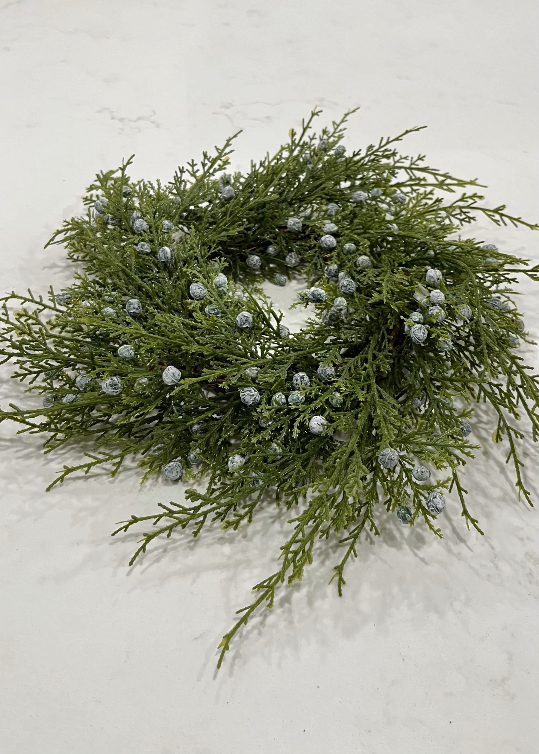 Add a touch of natural charm to your décor with this 3" Juniper Candle Ring. Featuring lifelike greenery, juniper berries, and subtle pine accents, this versatile ring fits perfectly around votive or pillar candles. Ideal for seasonal centerpieces, holiday tablescapes, or everyday rustic elegance, it brings the beauty of the outdoors inside—no maintenance required.