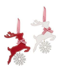 Add a whimsical and festive touch to your space by decorating your Christmas tree with this Flying Reindeer Ornament. This gorgeous MDF ornament is designed in the shape a of a flying reindeer with stitching detailing and a ribbon bow, and features a glittery silver snowflake dangler. Available in 2 assorted styles: White, and Red.