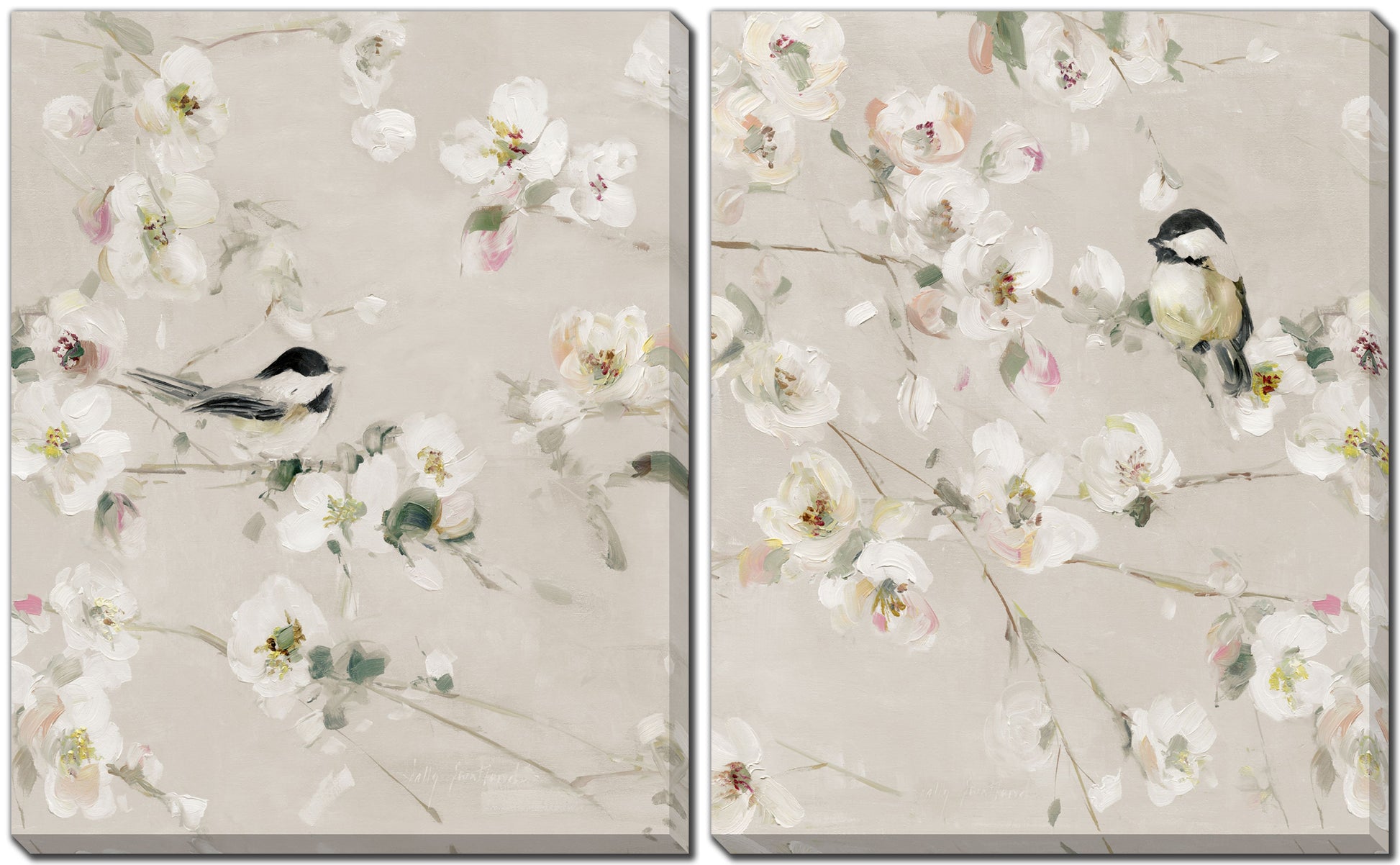 Each canvas piece has been hand embellished and gallery wrapped around pine stretcher bars.
