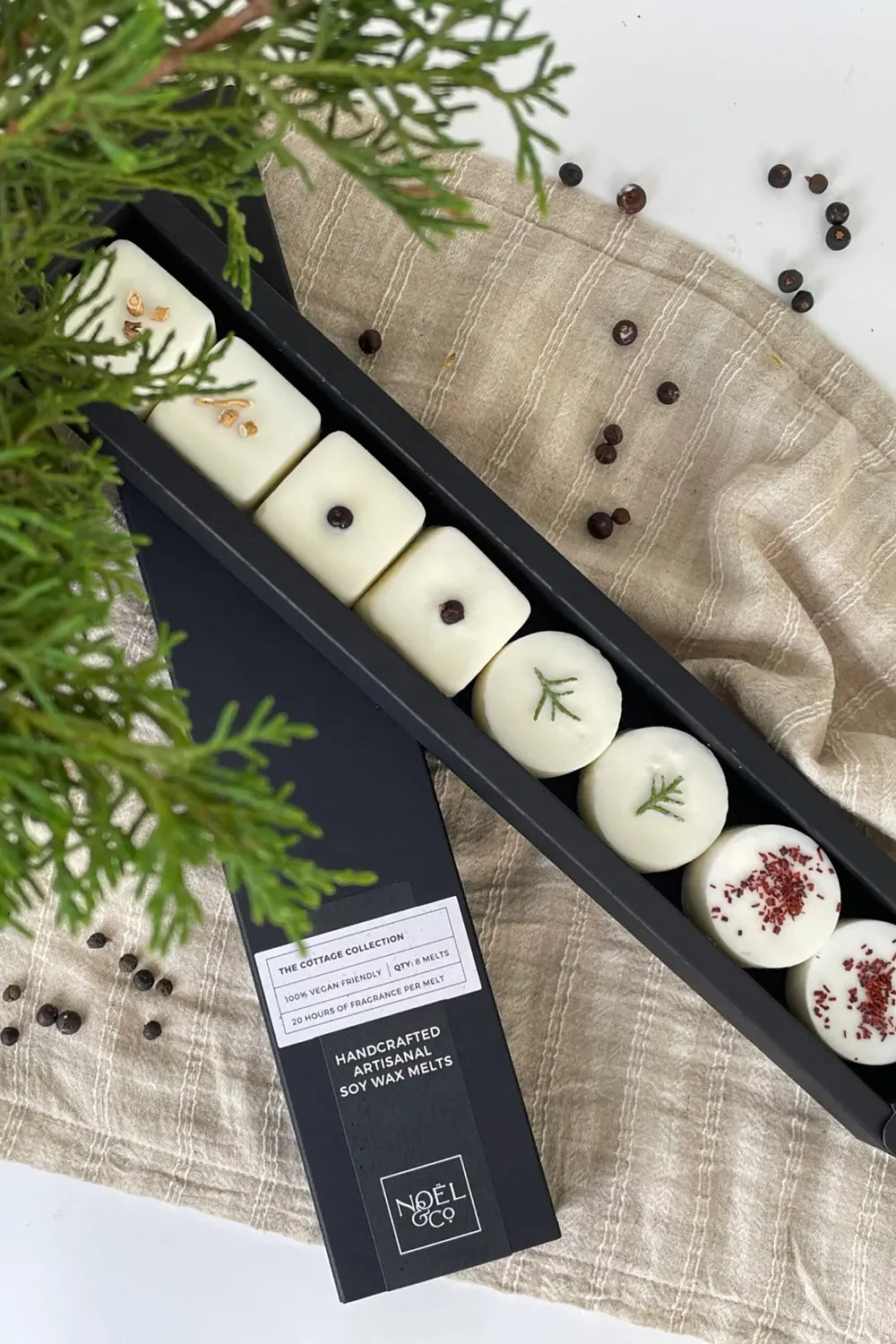 The Cottage Collection: Designed to bring the idyllic cottage in the woods direct to your home, this carefully curated collection includes 8 soy wax melts: 2 Tinder Box, 2 Forage, 2 Evergreen, 2 Lake House